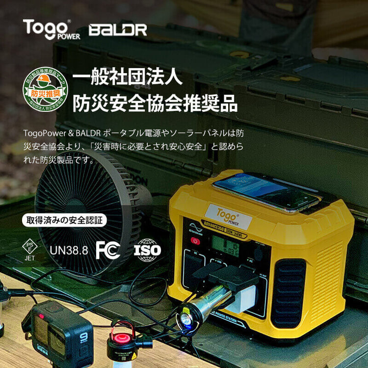 一般社団法人防災安全協会の定める防災製品など推奨品認証を取得しました。ポータブル電源やソーラーパネルは防災安全協会より、「災害時に必要とされ安心安全」と認められた防災製品です。
